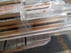 8 pieces of salvaged barn wood in 5" and 7" widths and 4′-6′ lengths. Straight cut edges for easy stacking. 1" thick