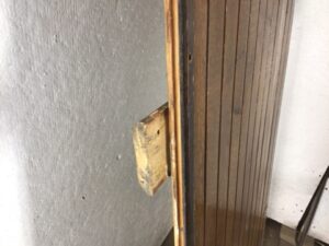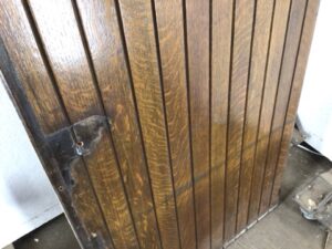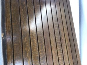 Quartersawn oak bead board panel – tongue and groove – panel has some scratches and screw holes – salvaged by our deconstruction team