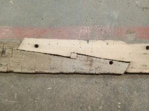 Two sides of the same scarf Joint cut from a salvaged Oak Barn Beam.