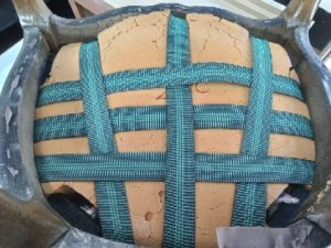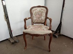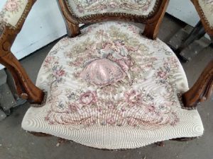 Solid wood. Damaged stuffing. Likely modern construction.