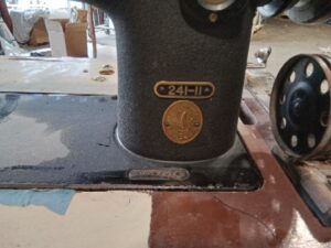 Black commercial singer 241-11 sewing Machine powers on and motor spins and missing belt, converted for electric