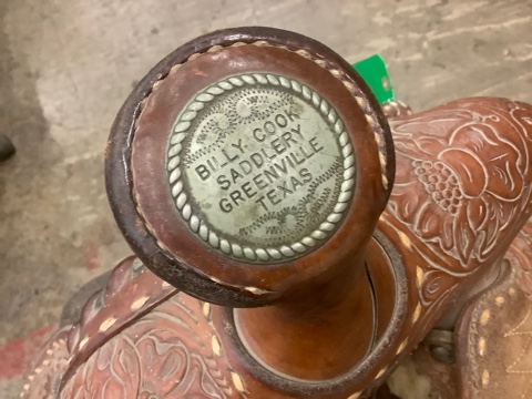 Vintage Billy Cook Saddlery horse saddle with exquisite custom leatherwork. Beautiful details and classic design. Well-crafted, durable, and in great condition. Perfect for riders or collectors seeking quality and authenticity.
