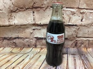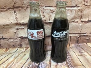 Vintage Coca-Cola Classic 8oz bottle celebrating Florida State ’93 National Championship. Specialty collectible featuring original ‘Classic Coke’ formula, perfect for enthusiasts & memorabilia collectors. Sold per bottle, timeless piece of soda history!