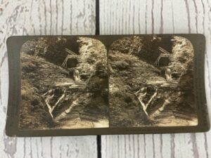 H.C. White Co. “Perfect” Stereograph set (4). Features scenic views: Gibraltar seagulls, Norway waterfall, England’s Lake District, and Watkins Glen cascades. Good condition—great vintage photography collectible.