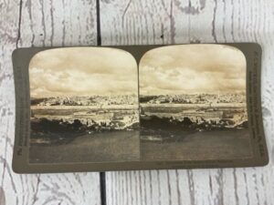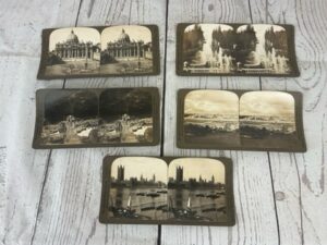 H.C. White Co. “Perfect” Stereograph set (5). Global landmarks incl. Japan, Jerusalem, Rome, London & Russia. Classic antique photography cards—great collectible display pieces in vintage condition.