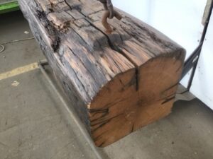 Rustic hanging barn beam, perfect for repurposing into a unique light fixture or pot hanger. Features a cool hook and chain for easy hanging. Adds vintage farmhouse charm to any space. Sturdy, full of character, and ready for your creative touch!