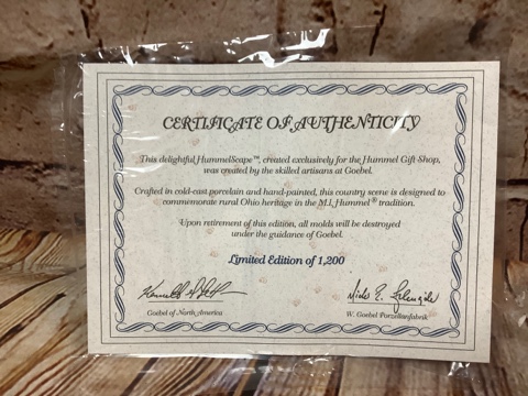Collectible Hummelscape™ figurine by Goebel, exclusive to the Hummel Gift Shop in Springfield, Ohio. Hand-painted, cold-cast porcelain captures rural Ohio’s heritage – New in BOX