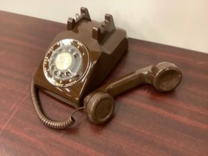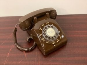 Vintage Brown ITT Rotary Desk Telephone. Has NOT been tested. Measures approximately 5-1/2” x 9” x 5”.