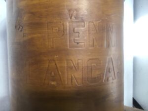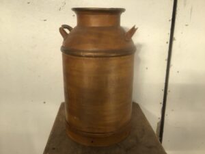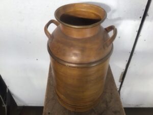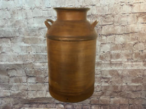 Vintage Penn Dairies Inc. steel milk jug refurbished paint. A charming collectible with rustic appeal, perfect for farmhouse décor or dairy memorabilia enthusiasts. Sturdy and classic, showcasing nostalgic craftsmanship.