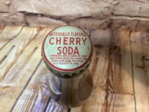 Saegertown Beverages Cherry Soda, 7oz, “The Aristocrat” – Vintage collectible bottle with original cherry soda. Specialty item “bottled at the spring.” Perfect for collectors and soda enthusiasts.