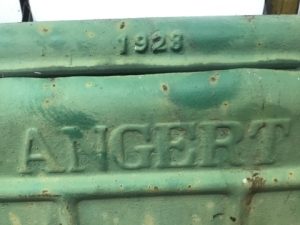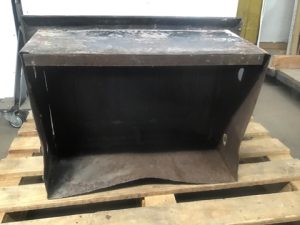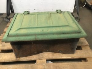 Vintage cast iron coal chute door. Double hinged door with frame, marked 1928 Angert. Green-yellow weathered patina, attached chute liner included in measurement.