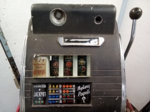 Vintage Sega countertop slot machine – the Machine is being sold as is and may have some missing parts (back door) and damage to the internals – great restoration project or parts machine
