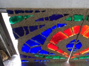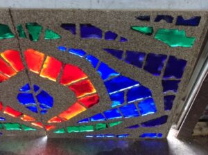 Stained Glass – Dalle de Verre Style Orange and Blue (Salvaged)