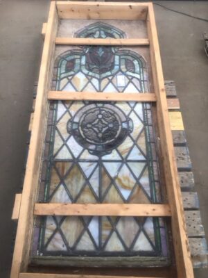 Stained Glass Panel – Leaded glass, no damage. Salvaged from a historic Pittsburgh church. Features a non-religious theme with stunning colors and craftsmanship. A unique architectural piece perfect for décor or restoration projects.