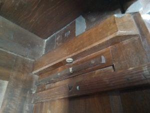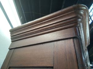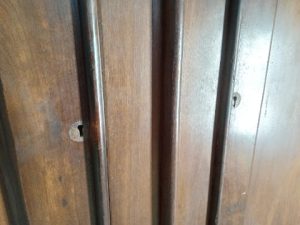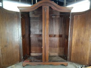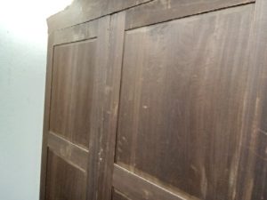 Antique Victorian knock down wardrobe – Walnut and polar – knockdown wardrobes are designed to easily separate into smaller pieces for simpler transport – this Cabinet has a simple design with a grand presence – has previous repairs