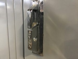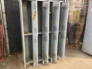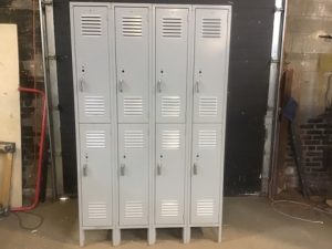Four over four, vented steel lockers. Lockable w/Padlock