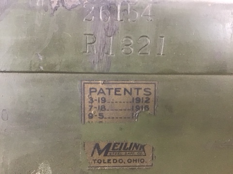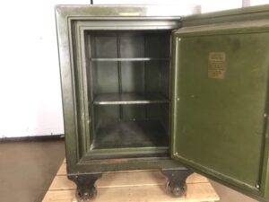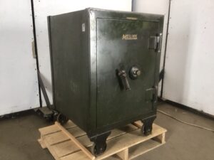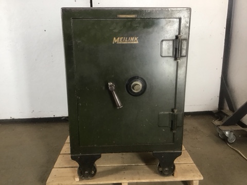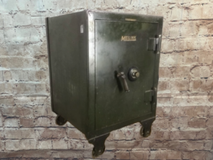 Vintage Meilink Steel Safe – Green, heavy-duty steel with an industrial office look. Durable and secure, perfect for valuables. Combination included.