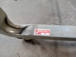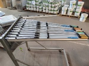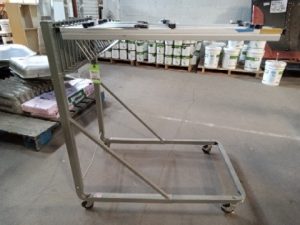 Drawing/drafting display cart with 11 arms and locking castors.