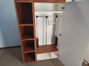 Institutional wall mount wardrobe with pull down clothes rack