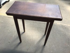 Expandable solid cherry side table. Tapered legs, folding top features SOSS invisible hinges.