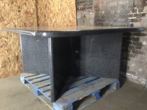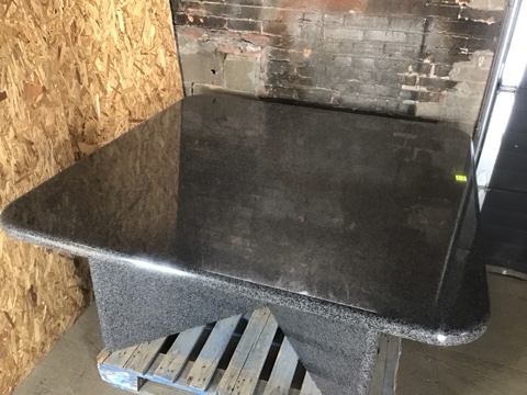 Table – Large – Square w/Interlocking Base – Granite – VERY HEAVY. Durable and stylish, perfect for indoor or outdoor use. Good condition with minimal wear. Bring help to move – this piece is solid stone!