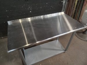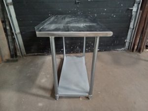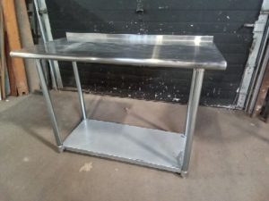 Stainless steel worktable – NSF rated – undershelf – rear upturn/backsplash – some scratches/staining