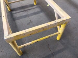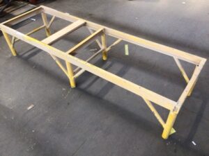 Steel workbench base – used in a cabinet shop – designed for cabinet assembly ans making work easier putting cabinets at a natural working height – welded steel c channel and tubing