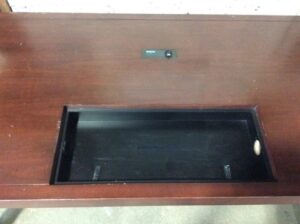 These tables are perfect for a workbench or model UN. With the built in XLR connectors and matching buttons you can easily mount your favorite microphones to even record a podcast or 2. Some scraps but good overall. Tables have 1 to 3 connectors.