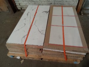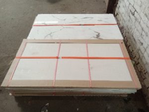 Sanfi calcutta 24×48 calacatta floor tile. Lot includes 36 pieces and is 275 sqft. Majority of the tile is still new in box.