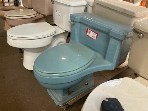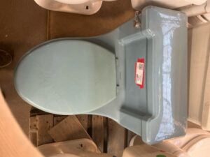 American Standard Vintage Low Boy Toilet – Blue. Sleek, classic design with timeless mid-century style. A rare vintage fixture that adds character and charm to any retro or modern bathroom décor. Durable construction and iconic American Standard quality.