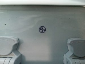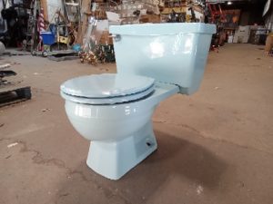 Light blue toilet stamped from 1974 made by Universal Rundle