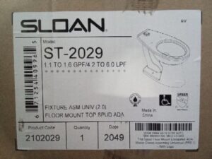 Sloan top spud toilet bowl – commercial – Ada compliant – 1.28gpf – bowl only – new in box – white MSRP $299.00 Available for shipping – email orders@cjreuse.org for details