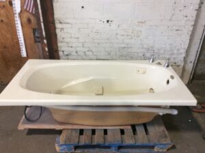 This jetted bathtub comes from the well known company Jacuzzi. With its 3 Jett’s it will no doubt circulate plenty of water for your needs. Missing some hardware but the body is in good shape.