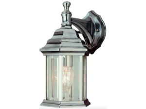 Trans Globe Lighting brand Templar model single A19-E26 bulb outdoor hanging wall lantern light in Swedish Iron finish, grey antiqued. Hexagon shape with clear beveled glass. Suitable for wet locations. Surplus item, never previously installed.