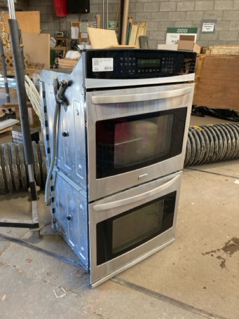Kenmore Double Oven, model 79048123800, black stainless steel. Untested, sold as-is. Great opportunity for a kitchen upgrade or DIY appliance restoration for a modern cooking space.