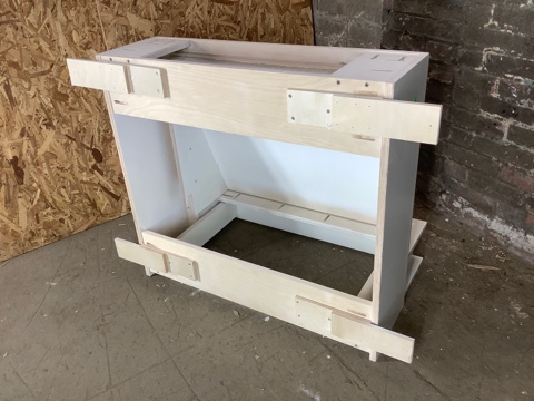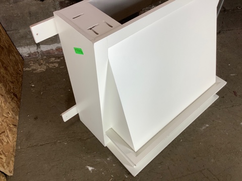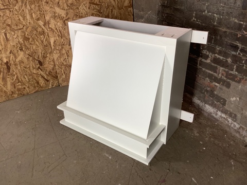 White premium plywood kitchen range hood/vent cover trim. Modern and durable design, perfect for upgrading your kitchen with a clean, sleek look. Crafted from quality plywood for lasting strength and style. Ideal for custom kitchen projects.