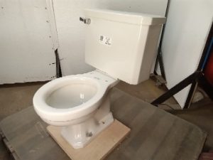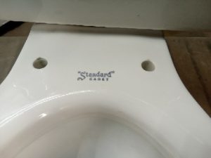 White 2 piece American Standard Cadet toilet with rounded bowl edge and 4 bolt base