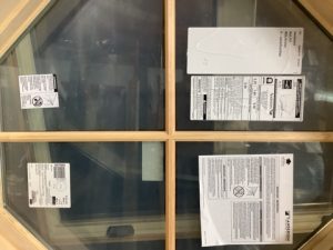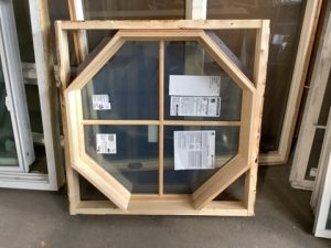 Anderson, Energy Star, double pane fixed octogon window. Black vinyl exterior. Never previously installed. dimensions are of the max of the framing