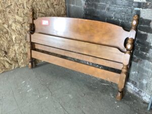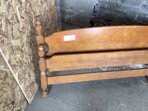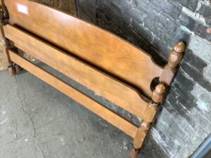 Full-size wood bed headboard and footboard with classic turned posts. Solid construction and timeless design make it a great choice for bedroom updates. Rails not included. Perfect for vintage or traditional décor.